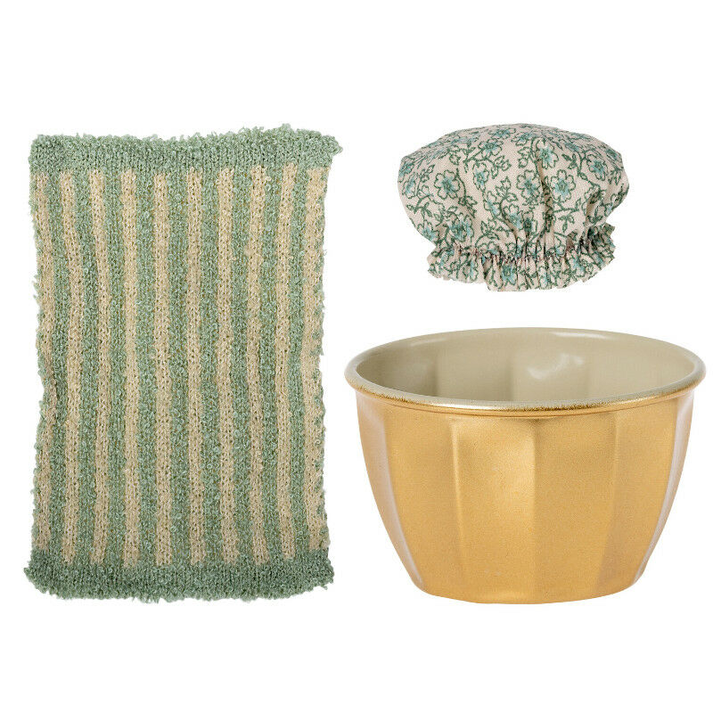 Wie alle anderen liebt es auch diese Maus, Stunden im warmen Wasser im Spa zu verbringen. Dieses Spielset enthält eine goldene Badewanne, eine Maus und ein Handtuch.